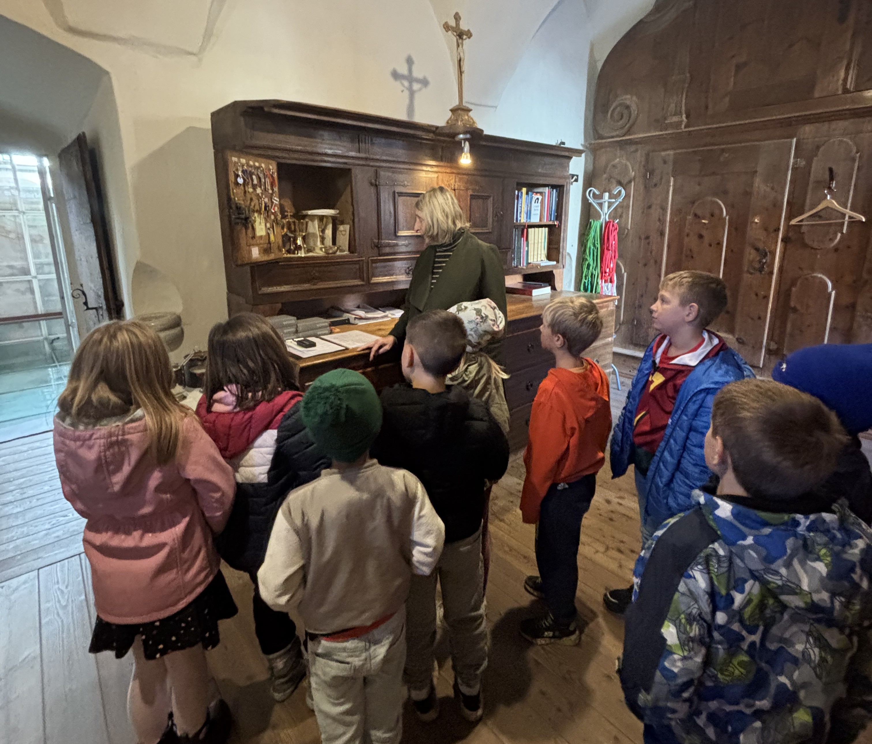 KirchenführungDie Erstkommunionskinder erhielten von der pastoralen Mitarbeiterin Mag. Karin Dorfer eine interessante und kindgerechte Kirchenführung. Mit viel Einfühlungsvermögen zeigte sie den Kindern die Kirche und auch die Sakristei und erklärte auf anschauliche Weise, was es dort alles zu entdecken gibt.