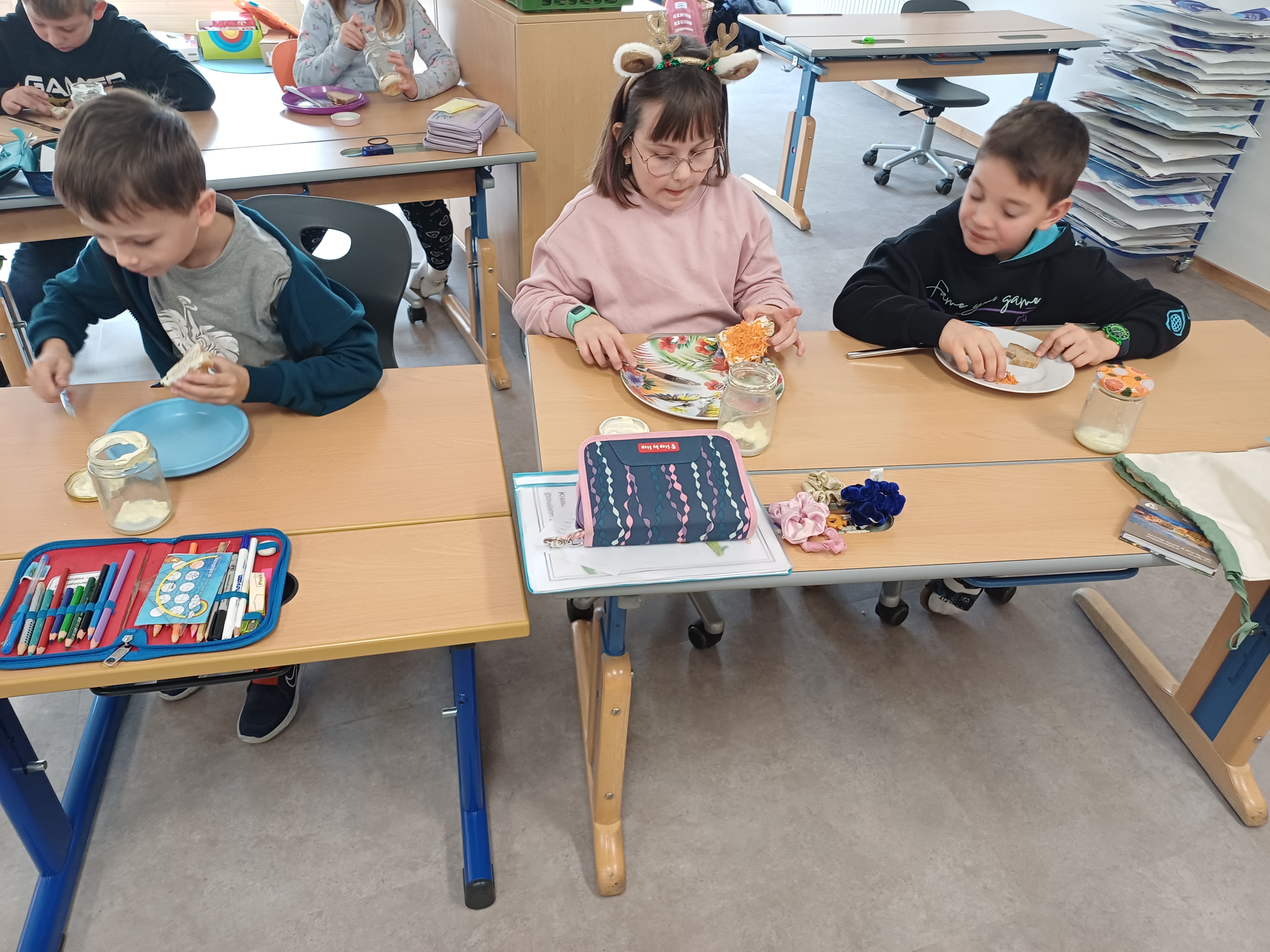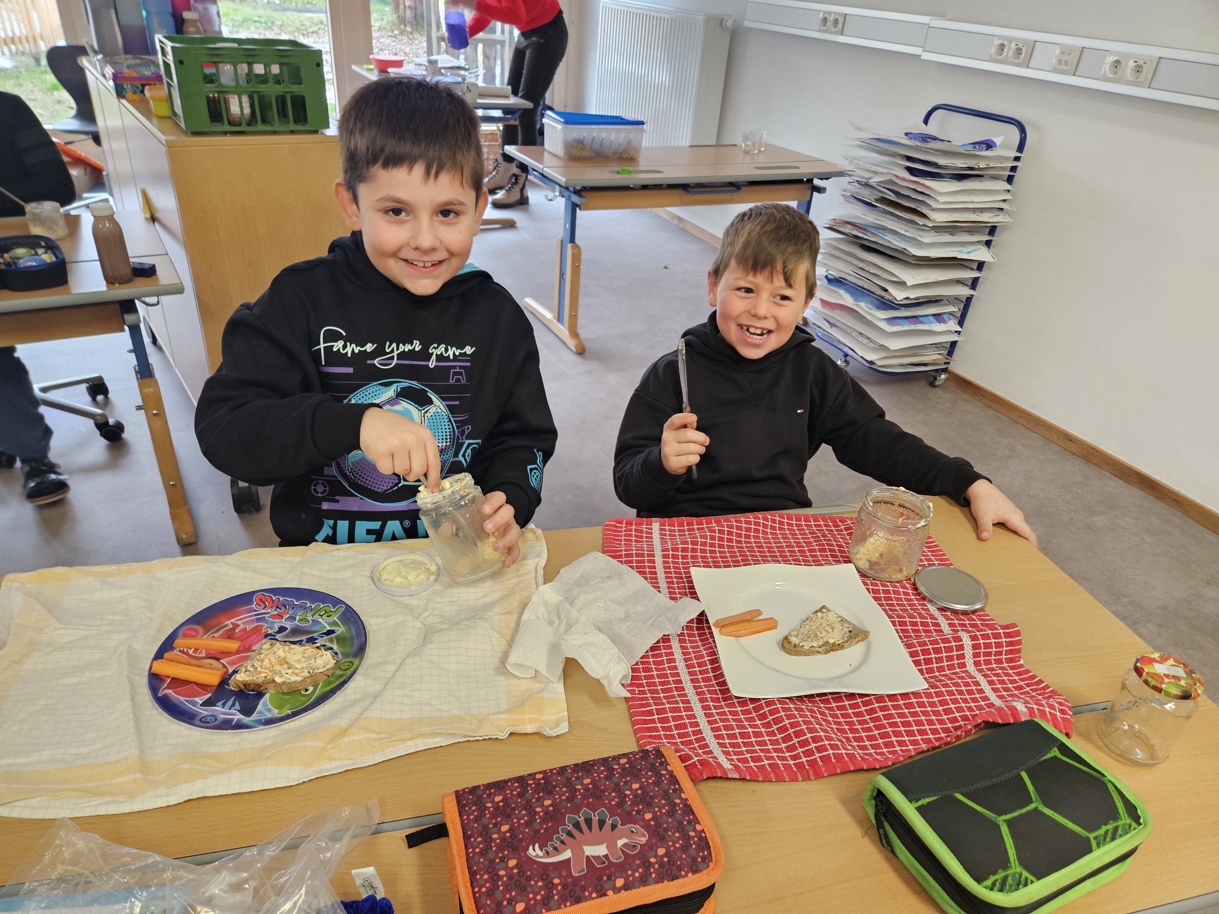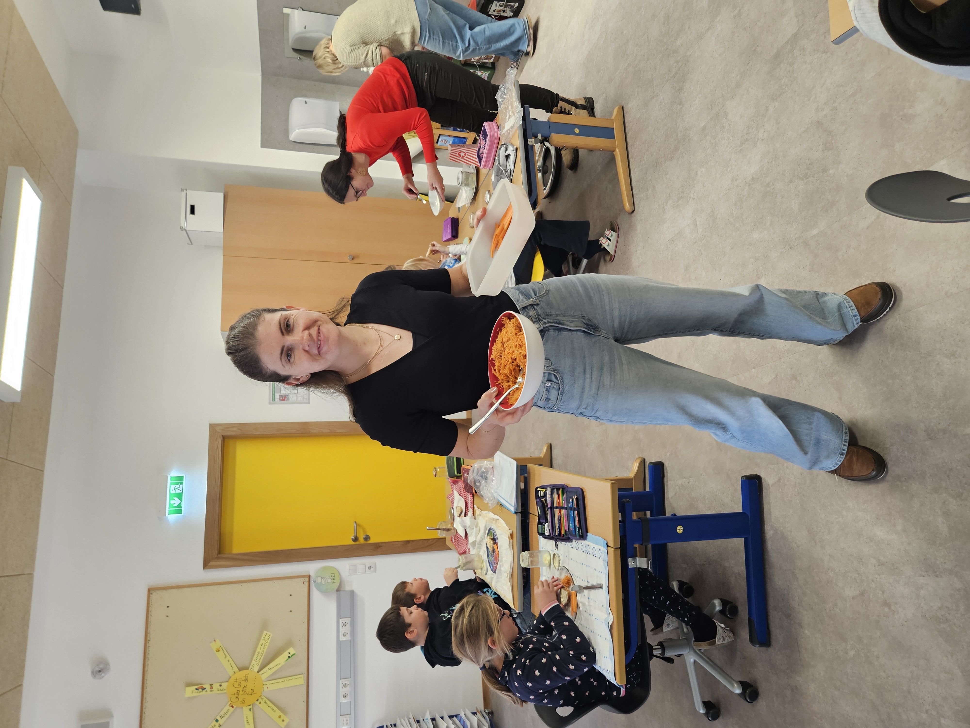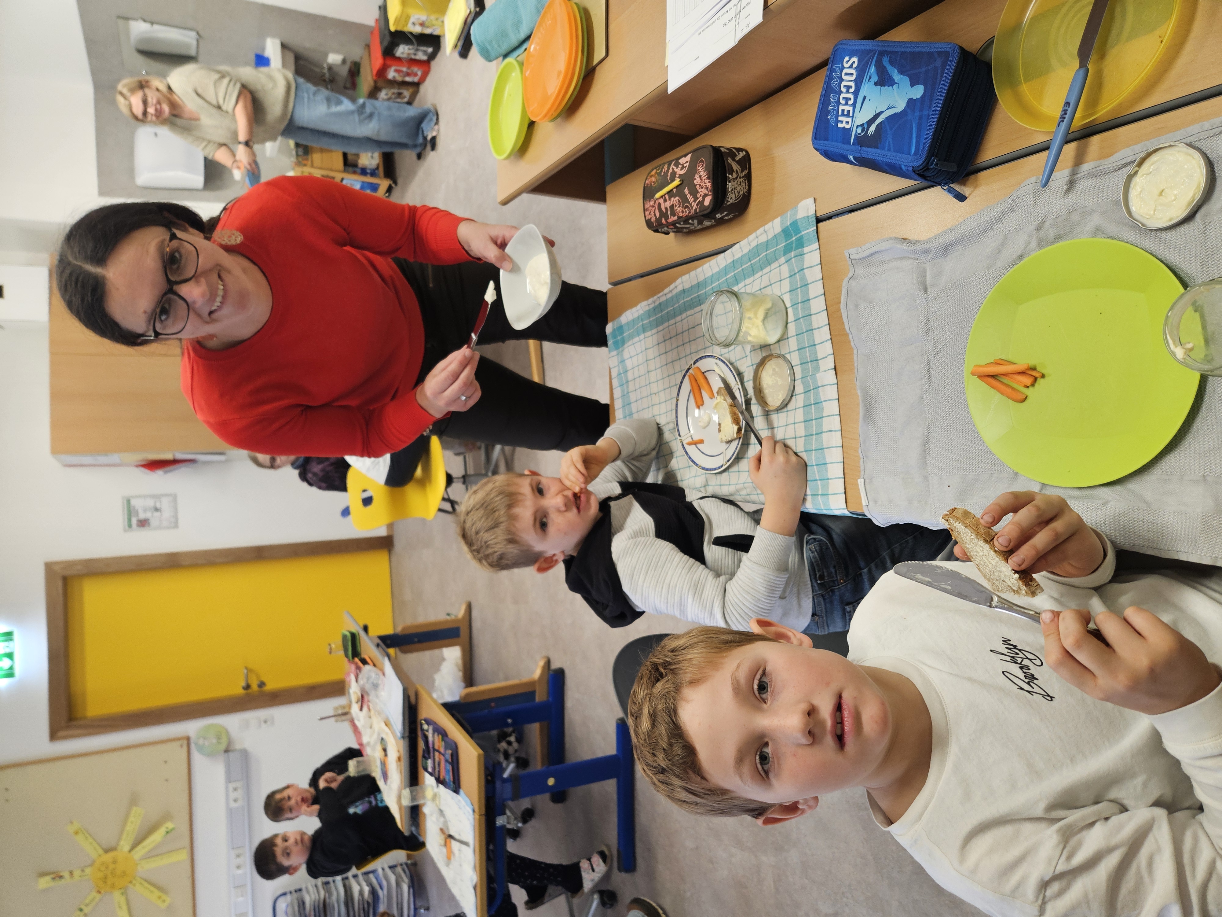 Am 24.11. durften die 2. Klassen die "Bäuerinnen" in der Schule begrüßen. Dieses Schuljahr stand Wissenswertes rund um die Karotte im Vordergrund. Nachdem jedes Kind selbständig Butter hergestellt hatte, wurde anschließend ein Butterbrot mit geriebener und gestifteter Karotte verzehrt. Herzlichen Dank für diese lebensnahen Einheiten.
