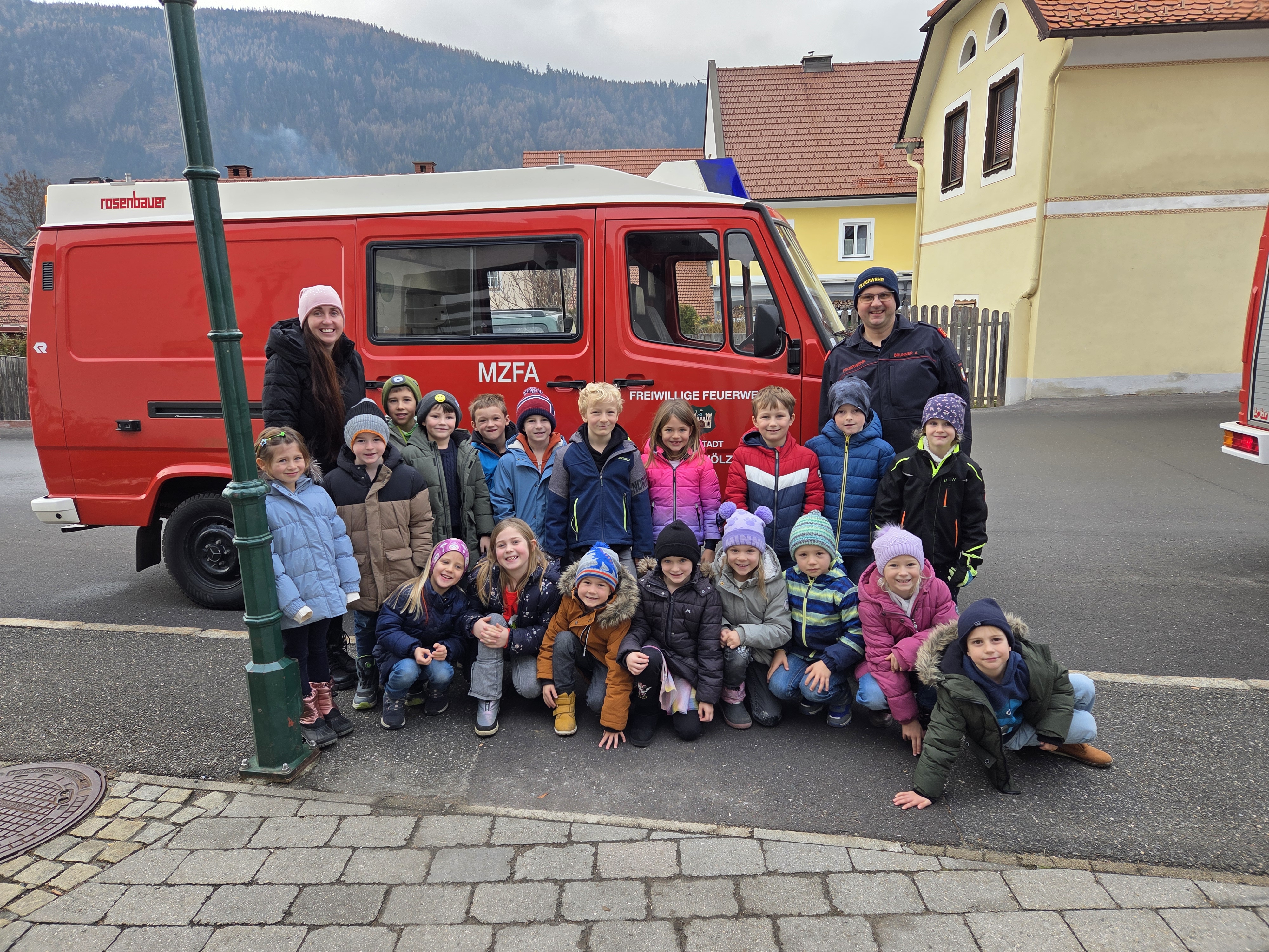 Am 4. Dezember 2025 stand für die 1. Klasse der Volksschule eine wichtige Schulung zum Thema richtiges Verhalten im Brandfall auf dem Programm. Kommandant HBI Alexander Brunner besuchte uns in der Schule und erklärte uns, worauf die Schüler:innen im Ernstfall achten müssen: