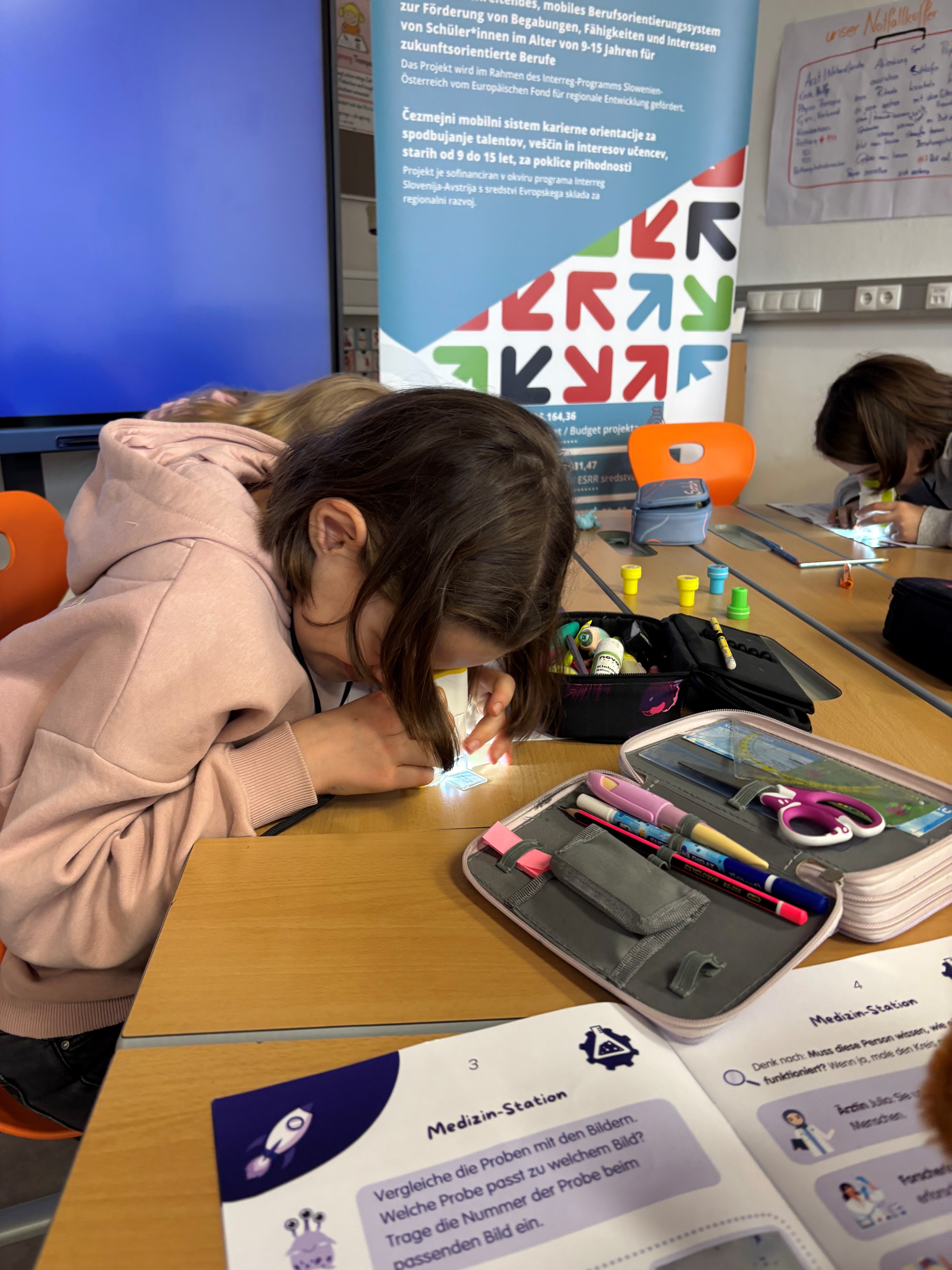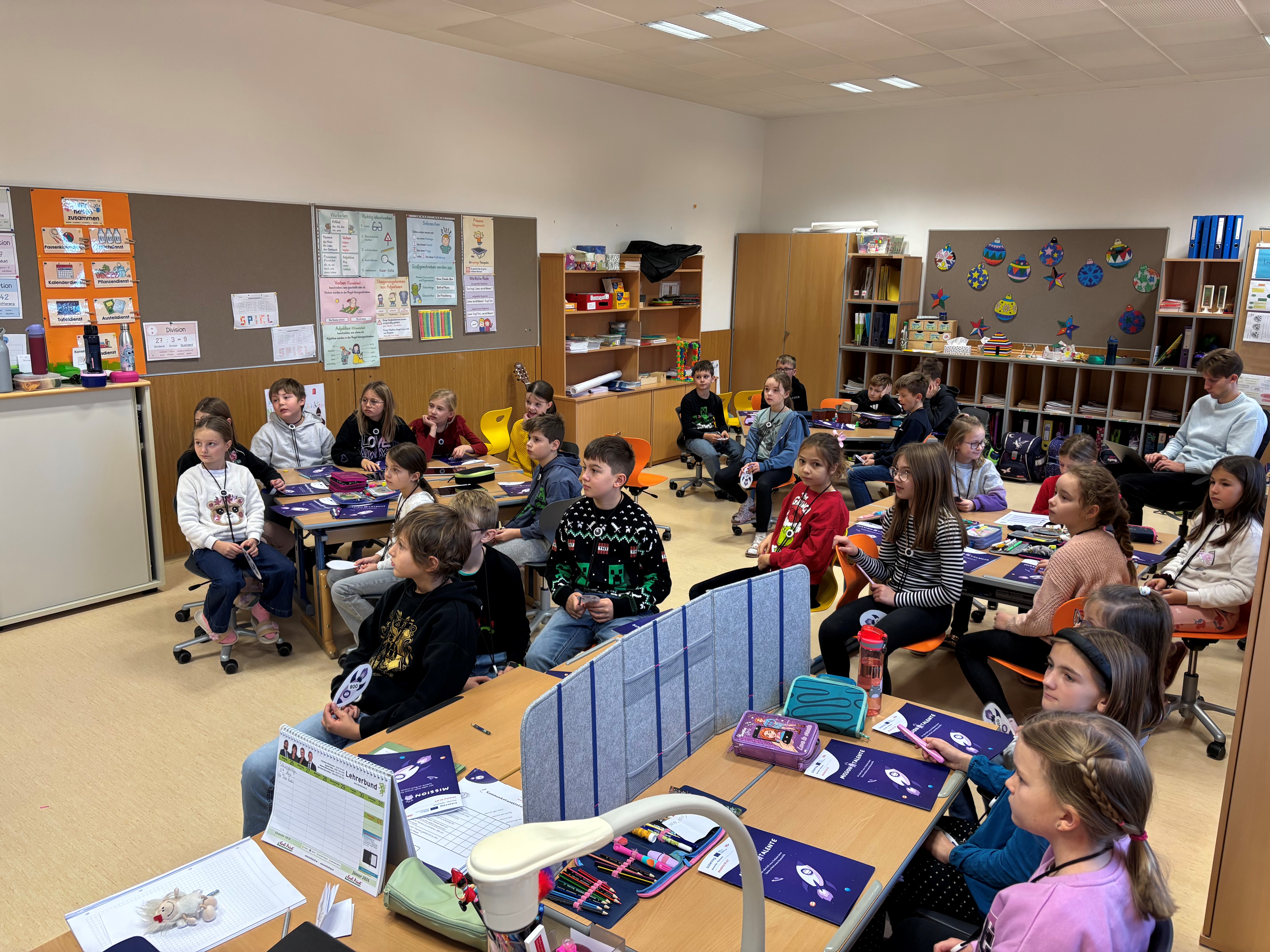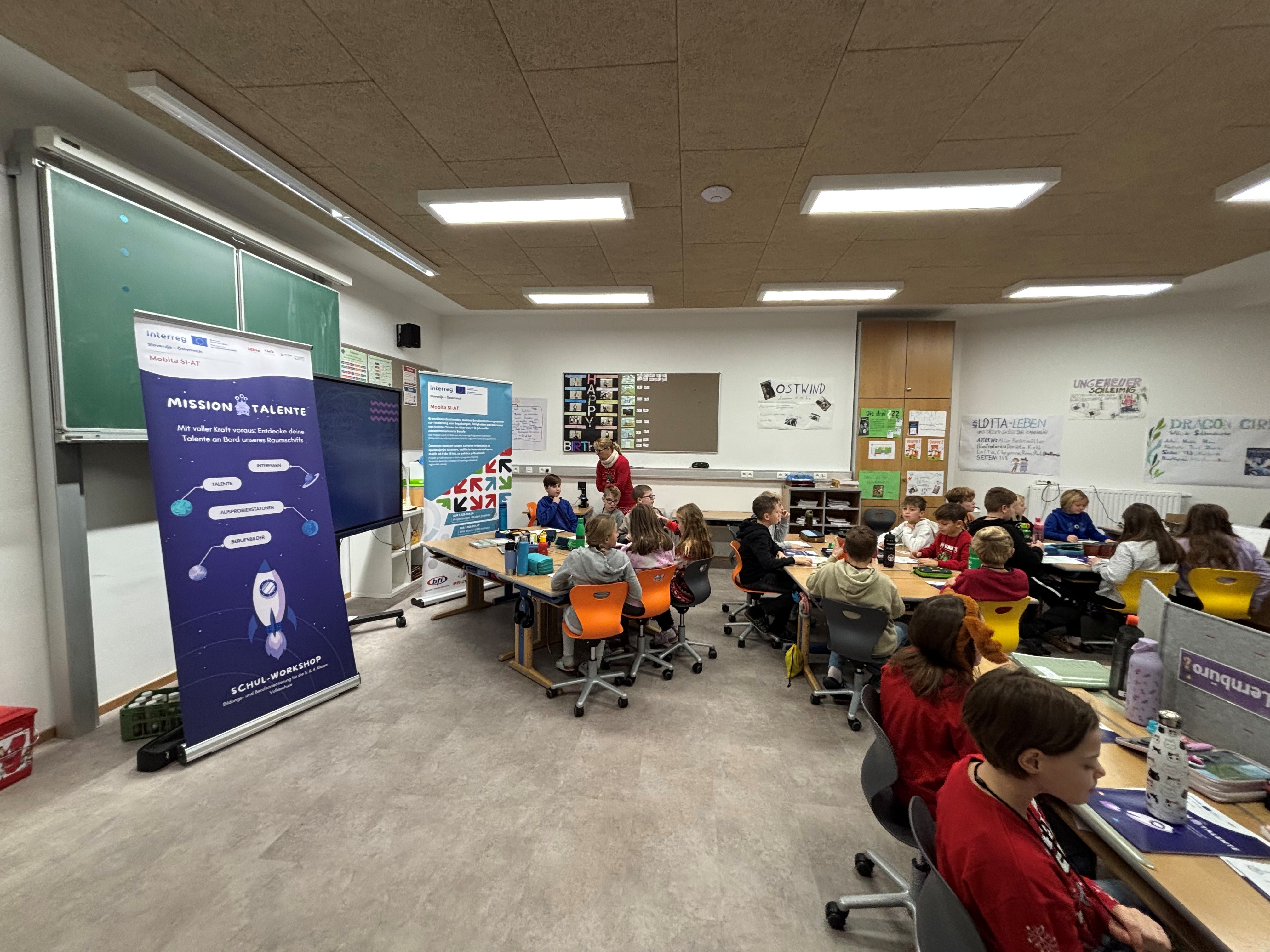 Das Talentcenter der WKO Steiermark versteht sich als Orientierungsplattform, die junge Menschen in Schule und Ausbildung unterstützt. Im Rahmen des Interreg Projekts Mobita SI-AT wurde das innovative Workshopkonzept "Mission Talente - Berufsorientierung für Volksschulen" entwickelt. Beim Workshop "Talente finden" begaben sich unsere Schüler:innen der 3. Klasse auf eine spannende Reise mit dem Raumschiff zu ihren eigenen Stärken. Mittels eines Stationenbetriebes entdeckten die Kinder spielerisch und kreativ, was sie besonders gut können und was ihnen Freude macht. Gemeinsam wurde ausprobiert, nachgedacht und gestaunt - denn jedes Kind hat besondere Talente! Der Workshop stärkte nicht nur das Selbstvertrauen auch andere Wege zu gehen, sondern zeigte den Kindern auch: Unsere Talente sind so verschieden wie wir selbst und in jedem von uns steckt etwas Einzigartiges!